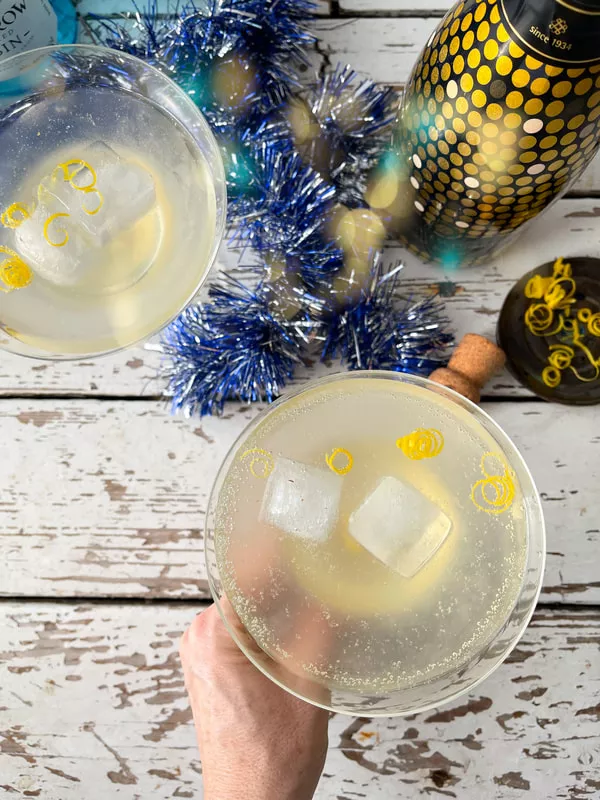Novoletni koktejl. 220° . Takšen sveži, za nov začetek leta. Bezeg, gin in penina. Top!