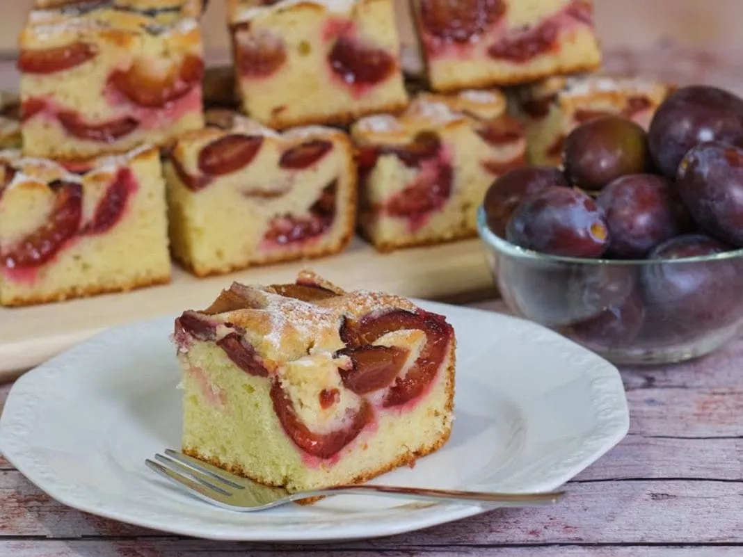 Sočen kolač s slivami, narejen iz preprostih sestavin, ki bo navdušil s svojo mehkobo in bogatim okusom.