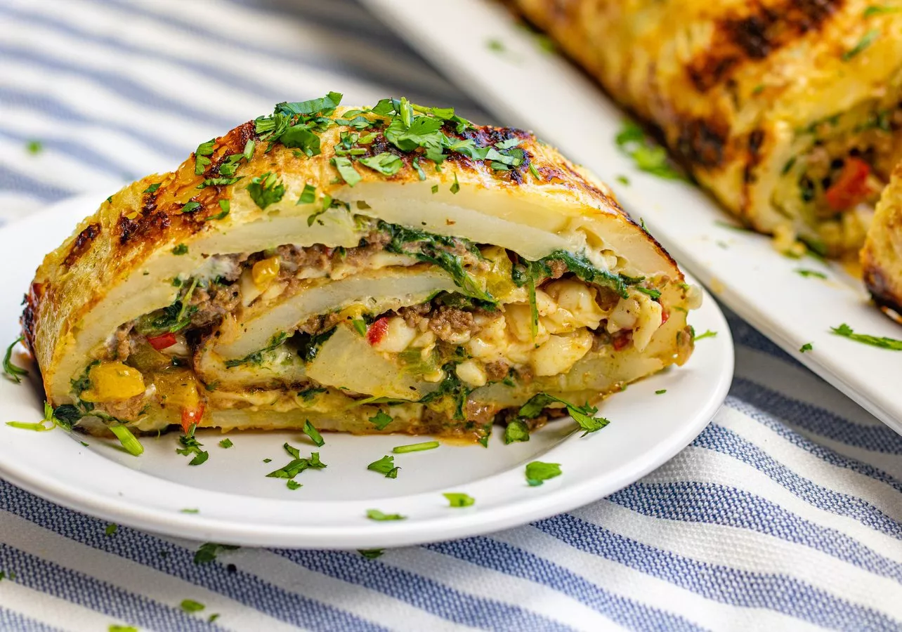 Krompirjeva rolada z mletim mesom, špinačo in sirom je odlična ideja za nasitno in hkrati malce drugačno družinsko kosilo. Spominja na priljubljeno krompirjevo musako in združuje preizkušene okuse, ki jih imamo radi, a tokrat v privlačni in nekoliko bolj posebni obliki.