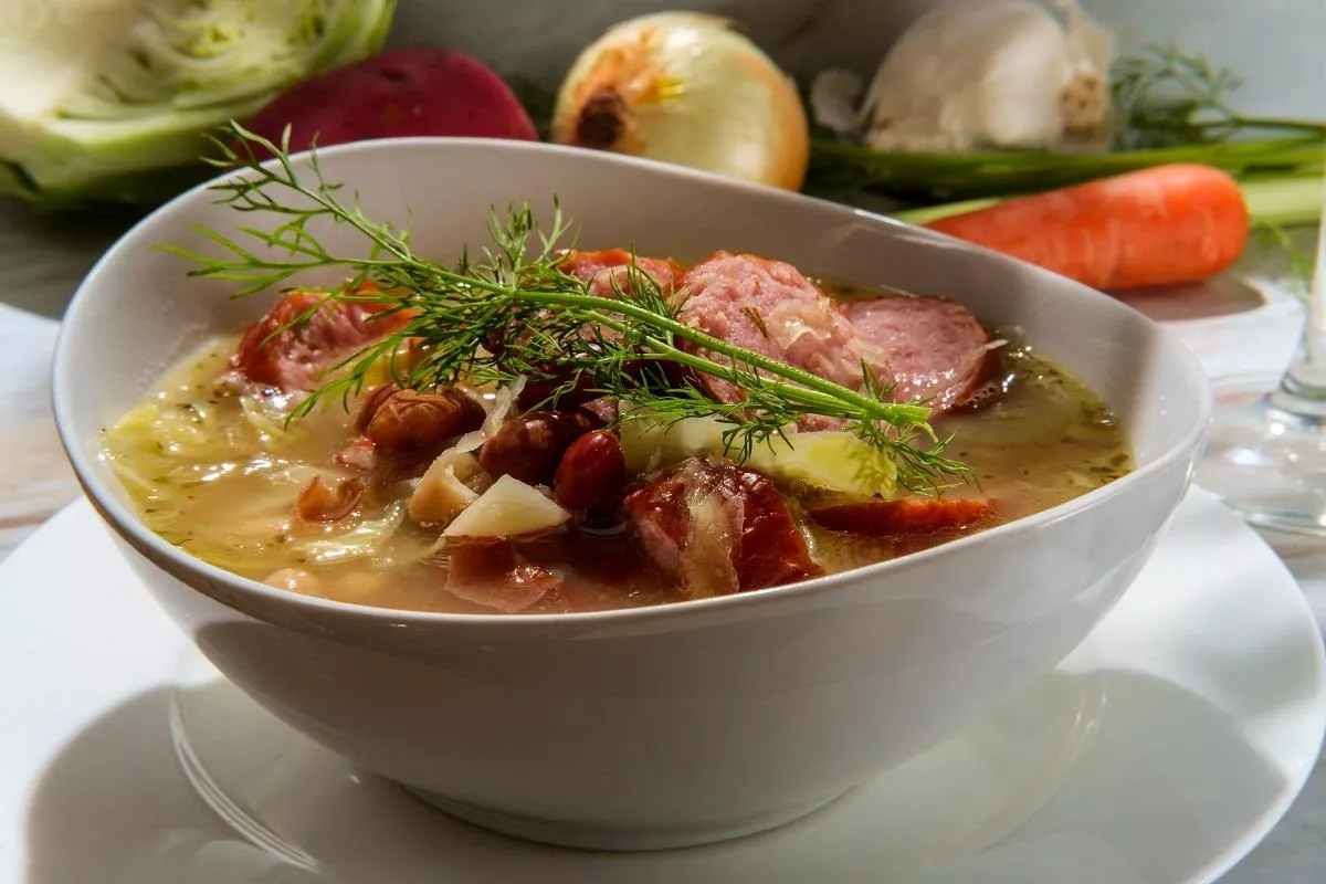 Tipična nemška zimska jed - juha s klobaso in kislim zeljem, ki vas bo pogrela v hladnih dneh.