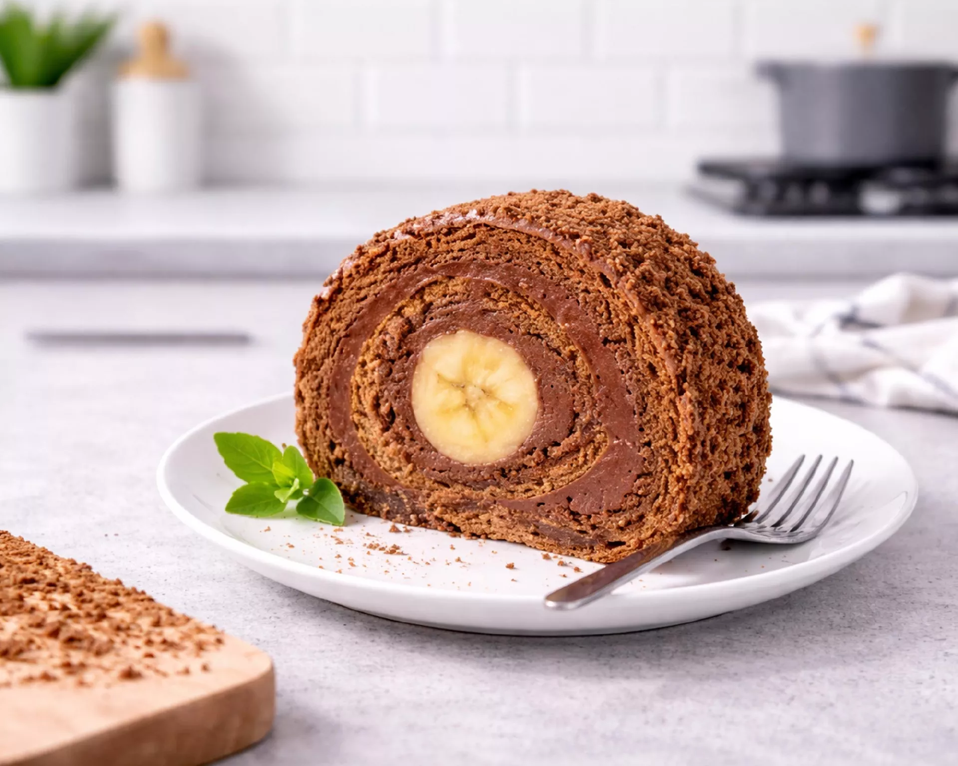 Čokoladno-bananina rolada je mehka, kremasta in preprosta sladica.