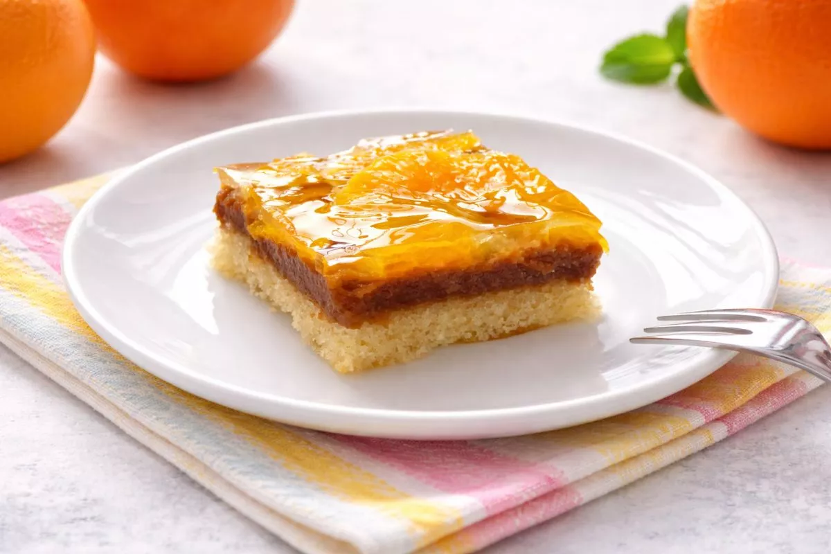 Rahel biskvit, ki ga popestri svežina pomaranče, pa navduši tudi z izgledom.