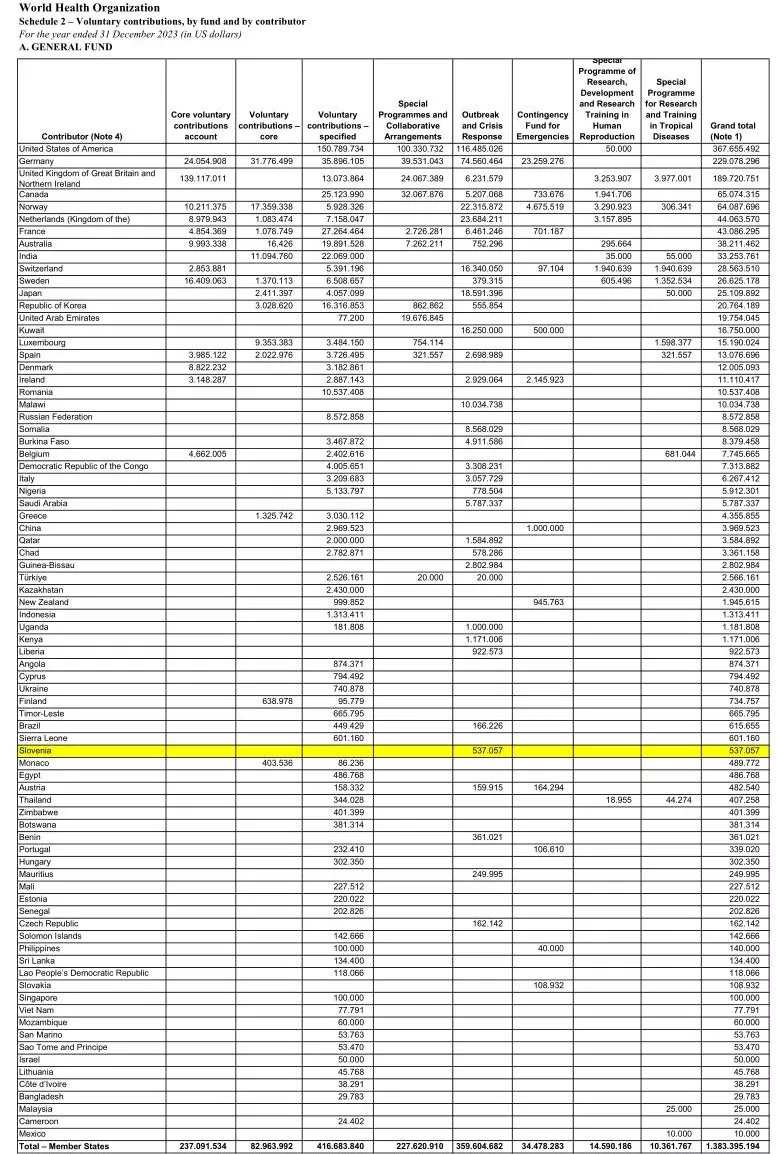 Ali trenutna vlada oz. kandidati za EU poslance lahko pojasnijo zakaj je Republika Slovenija (po podatkih SZO-ja) dala "prostovoljni prispevek" v znesku dobrega pol milijona dolarjev (davkoplačevalski denar - očitno SZO to bolj potrebuje kot državljani Slovenije)