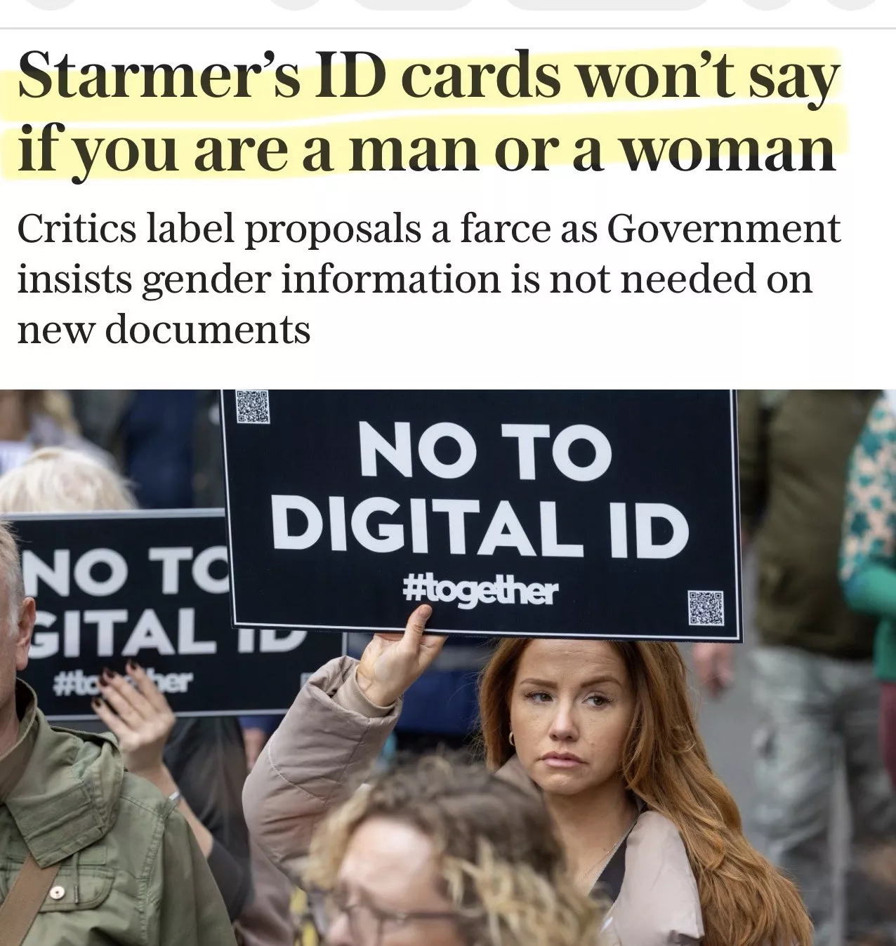 Predlagani sistem digitalne identifikacije v Veliki Britaniji je bil deležen kritike, ker ne beleži, ali je oseba moškega ali ženskega spola – kar je tradicionalno ključni identifikator poleg imena in starosti –, potem ko je vlada menila, da to za identifikacijo »ni potrebno«.