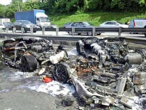 ...treh novih Lamborghinijev, ki so do konca zgoreli na malezijski avtocesti?