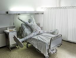 Na urgenci sprašujejo kje je gospa... noben nič vedel.... jo opišejo, taka pa taka, zlomljena roka... itd. .... pa jih pošljejo na en oddelek do dohtarja... jo opišejo dohtarju... pa ta reče... pa je res bila ta gospa pri nas.... ampak smo jo poslali na psihiatrijo, ker je vztrajno trdila, da jo je v bloku zbil smučar ...
