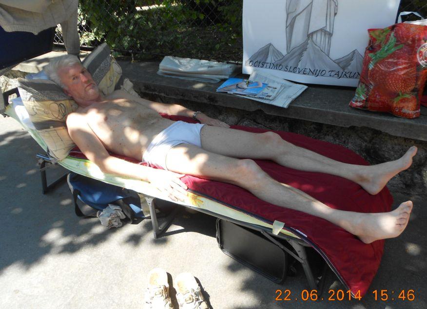 Ponoči je bilo mirno kot še nobeno noč prej. Le okoli štirih je prišel mimo znanec, ki je bil precej prešerne volje. Po nekaj besedah sem ga prosil, če me pusti spati, ker sem utrujen in bi želel spati. Podaril mi je za družino 5 evrov, ker več ni imel, in mi je obljubil, da pride v četrtek ob 19-ih na kulturni večer.