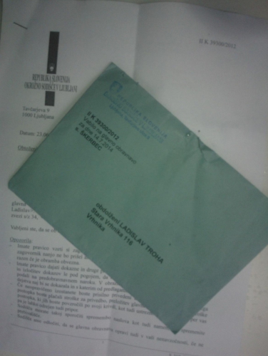 FAŠIZEM je to, dragi moji. Ostali protestniki so prejeli globe, jaz globo in še kazenski pregon. Najprej za dve leti, potem sem jim to raztrgal, so šli na pet let zagrožene kazni zapora, in zdaj se znova izgubljenci gredo tisto prvo različico za dve leti, ki ne stoji po nobenem pravu, tudi komunističnem ne. Pa še okrožno sodišče ni pristojno, ker je za zagroženo kazen do dveh let pristojno okrajno. Nekomu se je skisalo nekaj v glavi. Glavna javna obravnava v novem (ta je že tretji) montiranem sodnem procesu bo 14. 07. 2014 ob 12.30 uri na Okrožnem sodišču na Tavčarjevi 9 v Ljubljani, kamor hodim že 11 let.