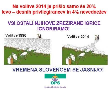 VOLITVE??? Če bi bilo možno z volitvami v teh razmerah navidezne demokracije karkoli spremeniti v korist 80% neprivilegiranih državljank in državljanov, bi bile, verjemite, z zakonom prepovedane. Kogarkoli ste v vseh teh letih izvolili, je moral delati kot je ukazala udbomafija iz ozadja. Torej ste vedno nevede izvolili mafijo, ki ima preko svojih nameščenev v celotnem sistemu formalno moč. ZATO JE NAŠA OBRAMBA PRED TEM ZLOČINSKIM POČETJEM SAMO STRIKTEN BOJKOT, DA JIM ZBIJEMO LEGITIMNOST NA NAJNIŽJO MOŽNO TOČKO ZARADI NEUDELEŽBE. Bojazen pa je, če ne bo kontrole, da bodo skušali ponarediti na Državni volilni komisiji tudi višino volilne udeležbe. Njihove zlagane javnomnenjske ankete že napovadujejo nekaj, kar v tem poletnem mesecu ni mogoče. Da bo udeležba nad 51%. Ne nasedajte lažem, kontrolo bomo pa tudi vzpostavili.