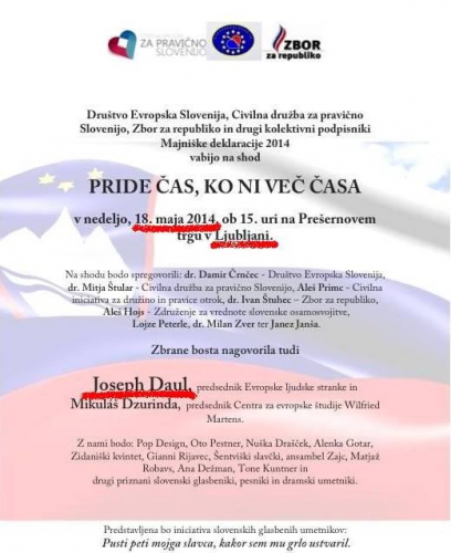 Nadaljevali smo s pisanjem na EPP in IDU 9., 10., 12. in 14. maja z vprašanjem, kdaj bo ponovno g. Daul spet v Sloveniji (ko smo že vedeli za njegov govor na shodu v podporo Majniški deklaraciji v Ljubljani), a odgovora ni bilo.