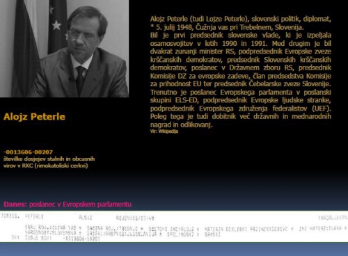 Eden ključnih takih udbovskih prevarantov je bil Alojz Peterle, ki je s svojo pojavo, mimiko, neurejeno brado ter duhovniškim glasom in nastopom prav neverjetno ponazarjal nekaj drugega, drugačnega. Zato je njegova SKD tudi dobila zmago v okviru koalicije DEMOS, ki so ga v vrhu sestavljali sami udbo-komunistični prevaranti. Zato so ga po dosegu etapnega strateškega cilja (odcepitve, kar je za njih pomenilo ustvariti si fevd za ropanje) tudi razbili. S tem so tudi začeli intenzivno deliti slovenski narod na vso moč in intenzivnostjo. Seveda na ideoloških podlagah in na umorjenih, zmetanih v brezna in jame ter zazidanih v rudniške jaške.