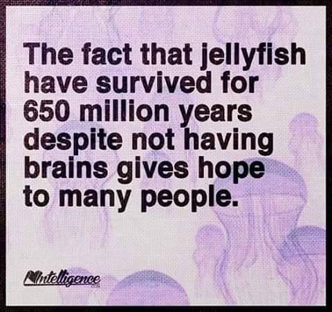 Šala zgoraj, je sicer duhovita, se pa ob njej vprašam, ali je človeško bitje zares tako razvito, kot je prepričano. Mnogoceličar brez možganov, nas je v evoluciji desetkrat prekosil. Človek je potreboval tisočletja, da je svojo možgansko kapaciteto zmogel tako raztegniti, da je izumil orožje, ki ga premore v sedanjosti, pa mu pravzaprav do sedaj še ni uspelo dovršiti ga do te mere, da bi se lahko kosal z brezkrvnim, prozornim bitjem, brez možganov. O nesmrtnosti sicer sanja in dela poizkuse z matičnimi celicami, ki pa bodo zaradi njegove pohlepne narave, po vsej verjetnosti prej vodili v civilizacijski propad, kot pa ohranitev vrste.