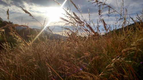Včasih grem in se vržem v sredo travnika, tistega nepokošenega, na katerem baje, najdeš večjo raznolikost rastlinskega sveta, kot v celi Angliji…. Pa to ni važno. Vržem se na hrbet, Lajka navdušeno skače okrog mene, češ, končno se je gospa malce sprostila in se povaljala po travi, kot jaz to počnem vsak dan :) . Potem pa se butne, ja butne poleg mene in se mi reži, jaz pa pogledam v nebo, dolge travne bilke in cvetovi, delajo večno valujočo kupolo, umirim misli in notranji glas in prisluhnem zvoku življenja. Brenčeč je, cvrčeč in čivkajoč. Vsevprek lezejo majhne žuželke, pajki, vsake toliko zaznam skok kobilice, ki ga lahko celo slišim, no vsaj njen pristanek, na travni bilki, poleg sebe opazim polžjo slino, ali morda njej podobno snov, ki jo je za sabo pustila kakšna druga reč, drugo bitje, druga žuželka, druga živalica…. Zavem se. Vesolje v vesolju. Na tisoče različnih vesolj. Vse je živo. In čudovito je, ker je enostavno.