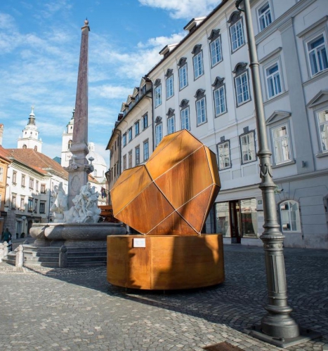 Skulptura, ki označuje, da je Ljubljana Zelena prestolnica Evrope 2016