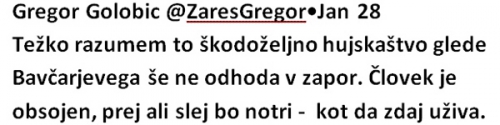 Očitno Golobič meni, da imamo ljudje res kratek spomin. Človek, ki je sprožil pravi lovski pogon na Istrabenz in Igorja Bavčarja, zdaj toči krokodilje solze nad Bavčarjem.