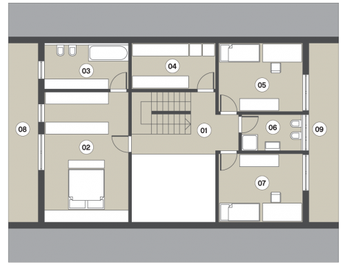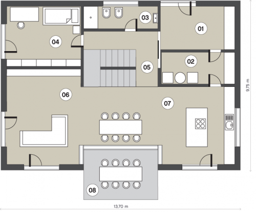 Arhitektura linije COMFORT izhaja iz enostavne zasnove tradicionalnih hiš s strmim naklonom strehe. Tlorisna razporeditev je prilagodljiva, udobno dimenzionirani prostori pa sledijo funkcionalnosti sodobnih bivanjskih slogov.
