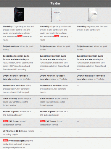 Da bo izbira lažja, smo za vas pripravili primerjalno tabelo vseh verzij Steinberg Cubase:
