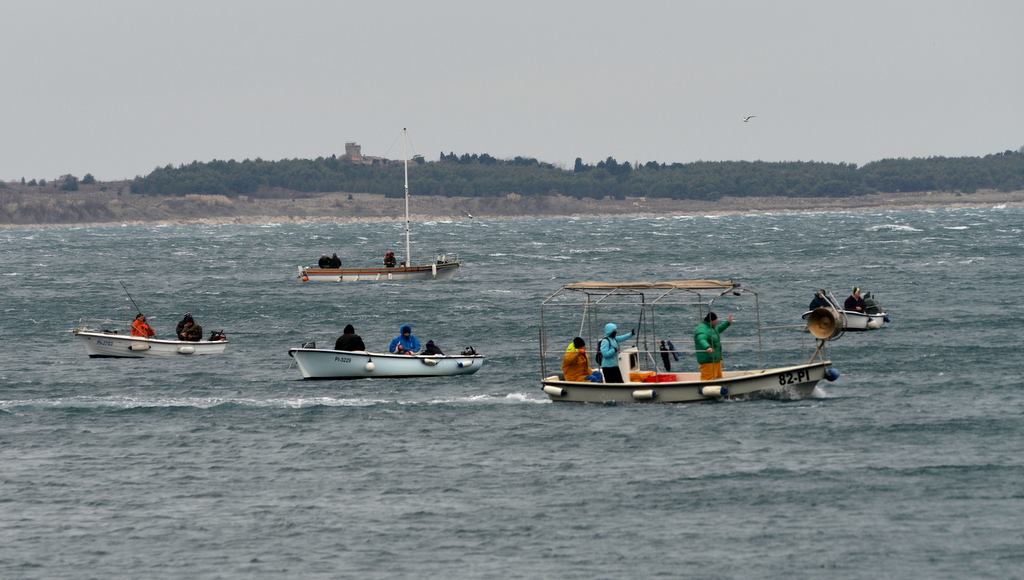 Ura je že skoraj 9.00, ko se priguncamo na ribolovno področje. Vsi so že dolgo zasidrani in veselo lovijo, mi pa iščemo ugodno pozicijo za sidranje, ki zna biti ob tako močnem vetru, kar zabavna aktivnost.