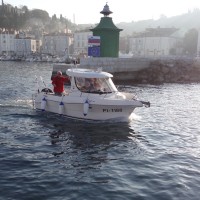Ura je bila 08.10 ko smo že brzeli proti izhodu iz piranskega pristanišča. Dan je bil čudovit.