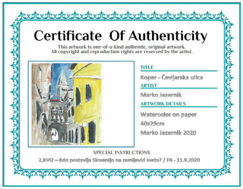Rezultati kviza in rezultat žrebanja - dobitnika akvarela Koper - Čevljarska ulica, avtorja Marka Jezernika.