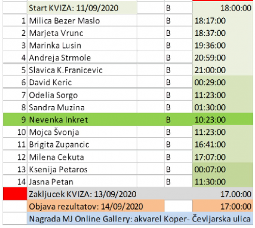 Zakljucek KVIZA: 13/09/2020 Time 17/00