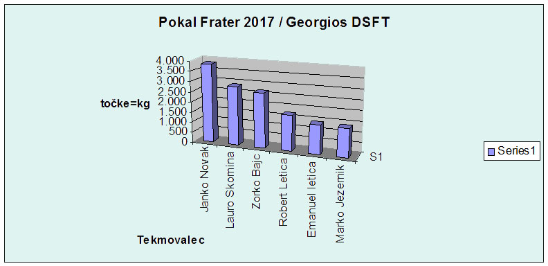 Odločili smo se za analitični pristop k obravnavi dosežkov Georgios Deep Sea Fishing Team-a na prvem uradnem tekmovanju Pokal Frater 2017. Vsi uporabljeni podatki za analizo so iz uradnih rezultatov organizatorja tekmovanja RD Oradela Piran (vir: Rezultati društvenih tekmovanj 2017 Pokal Frater 2017 )