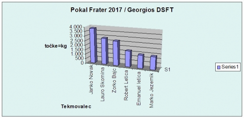 Graf 2: Primerjava rezultatov ulova treh prvouvrščenih z rezultati članov Georgios DSFT