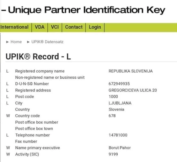 - Registrski organ: Uprava RS za javna plačila