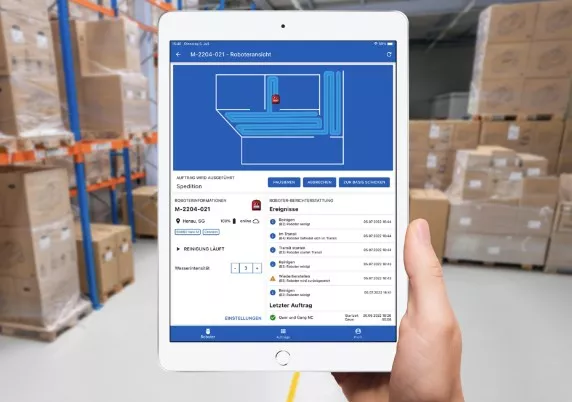 Aplikacija omogoča daljinsko nadzorovanje, načrtovanje čiščenj, prejemanje obvestil, pregled poročil o čiščenju in upravljanje flote robotov. Za napredne modele je vključen tudi urnik čiščenja ali integracija z infrastrukturo, kot so dvigala, vrata in alarmni sistemi. Povezava prek Wi-Fi ali LTE zagotavlja nadzor v realnem času kjerkoli, kar je še posebej koristno za upravitelje velikih objektov.