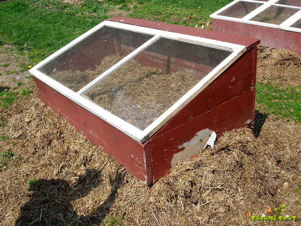 Lesene deske zaščitimo z lanenim oljem ali stopljenim čebeljim voskom. Širina okvirja naj ne presega 150 cm, dolžino pa prilagodimo oknom, ki jih imamo na voljo. Steklen pokrov je lahko sestavljen tudi iz več oken. Okvir je na zadnjem, severnem delu lahko visok 30 cm, na sprednjem, južnem delu pa 15 cm. Ob vogalih ga utrdimo s količki.