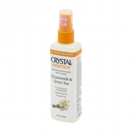 Razpršilo Crystal essence vsebuje naravne mineralne soli ter pomirjajoče esence kamilice in zelenega čaja. Nanos tvori zaščitno plast proti bakterijam, ki povzročajo razgradnjo potu in neprijeten vonj. Kamilica deluje protistresno, zeleni čaj pa antioksidativno. Kombinacija prijetno osveži in ne preobremeni čutil. Razpršilo Crystal essence nudi dolgotrajno zaščito, ni lepljivo in ne pušča madežev ter belih lis.