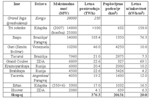 Če seštejemo samo poplavljena področja naštetih desetih hidroelektrarn, ki skupaj proizvedejo le 0,26 odstotka svetovne potrošnje energije, dobimo že okrog 13 odstotkov potrebne površine za solarne sprejemnike celotnega globalnega solarnega energetskega sistema.