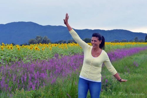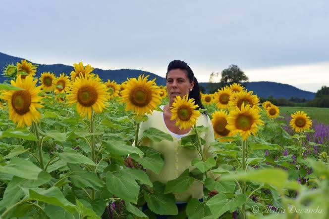 Oblačno vreme naju ni zmotilo za fotkanje med sončnicami...