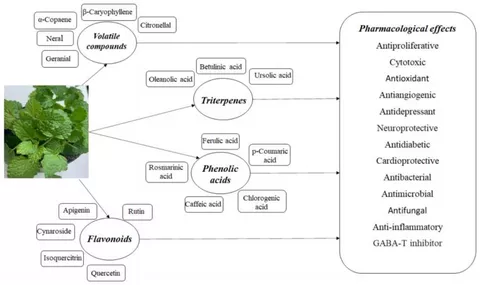Vir: Melissa officinalis: Composition, Pharmacological Effects and Derived Release Systems—A Review