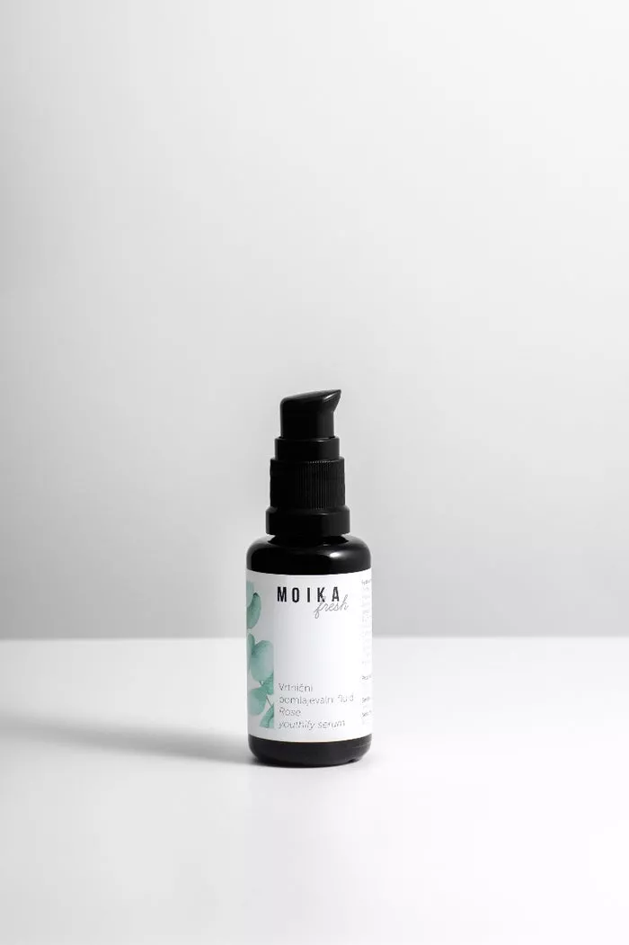 Najnovejše kozmetične smernice opozarjajo, da mora biti v vsaki kopalnici ženske prisoten dober, odličen vlažilni serum, ki koži dostavlja visoko potentne učinkovine, ki pomagajo ohranjati mladosten videz in preprečevati prezgodnje staranje kože. Kompleks antioksidantov, ki kožo zaščiti pred oksidativnim stresom smo izbirali tako, da imajo poleg omenjene funkcije tudi viden učinek na zmanjševanje globine gub ter poškodb zaradi fotostaranja. Med njimi gre omeniti prav izvleček granatnega jabolka, ki vsebuje redko punicinsko kislino, izjemen antioksidant. Njegove sestavine omogočajo obnovo usnjice ter zmanjšujejo poškodbe, zato je med vsemi izvlečki rastlin, ki uspevajo v našem okolju, prva izbira za nego zrele in zahtevnejše kože. Svežino in napet videz kože skozi dan dosežemo z izbiro vlažil, medtem ko na otip mehak in gladek občutek dajejo izbrano olje slivovih jedrc in izvlečki slezenovk. Vonj vrtnice z nežnim pridihom rimske kamilice sprošča, pomirja in ugodno vpliva na naše razpoloženje.