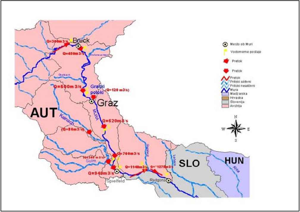 Slika 6: Gibanje pretočnih količin na vodomernih postajah na prispevnem območju Mure (srednji del).