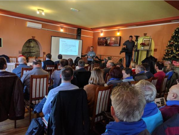 Posvet o izrabi vode Mure je organiziral tajnik Združenja za energetsko neodvisnost Slovenije (ZENS) Božo Dukič v torek v Murski Soboti. Predstavnik agencije Arso Renato Bertalanič je predstavil nekatere izsledke raziskave o podnebnih spremembah v Sloveniji. Aljaž Lesjak iz podjetja Geofoto je razložil, da so Muro s posegi skrajšali. Timotej Pepevnik iz Geološkega zavoda je predstavil gibanje pomurske podtalnice, Miran Torič iz murskosoboškega Kmetijsko gospodarskega zavoda pa je povedal, kaj pomeni namakanje v Prekmurju. Foto: Borut Hočevar