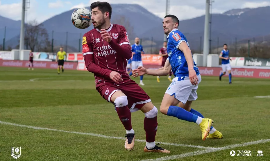 Solidnu priliku imao je Krpić u 80. minuti, ali glavom je loptu poslao pored gola bordo tima.