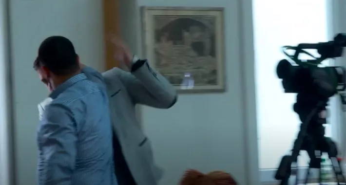 Nakon početne verbalnog duela, na snimci se može vidjeti kako zastupnik Srdić (više puta mijenjao stranke, trenutno je koliko je poznato bez stranke) počinje da gura Salihagića (zamjenik predsjedavajućeg OV Novo Sarajevo i član NES-a), a naposljetku ga udara u predjelu glave.