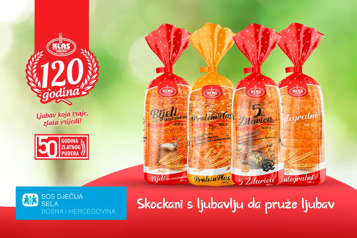 (Patria) - Kompanija Klas odlučila je pridružiti se klubu prijatelja SOS Dječijih sela u BiH te podržati porodice u kojima odrastaju djeca i mladi bez roditeljskog staranja. Kupovinom Klas Skockanih hljebova do 31. marta 2023. godine, svi mogu biti dijelom kampanje „Skockani s ljubavlju da pruže ljubav“ i pomoći djeci i mladima koji odrastaju u SOS Dječijim selima u BiH.