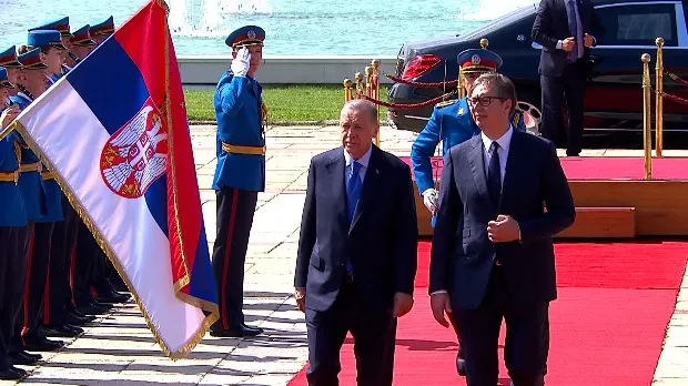 Erdogan je u utorak uvečer stigao u dvodnevnu posjetu Srbiji, a na beogradskom aerodromu “Nikola Tesla“ dočekali su ga Vučić, ministar vanjskih poslova Nikola Selaković, ministar poljoprivrede Branislav Nedimović i ministrica trgovine, turizma i telekomunikacija Tatjana Matić.