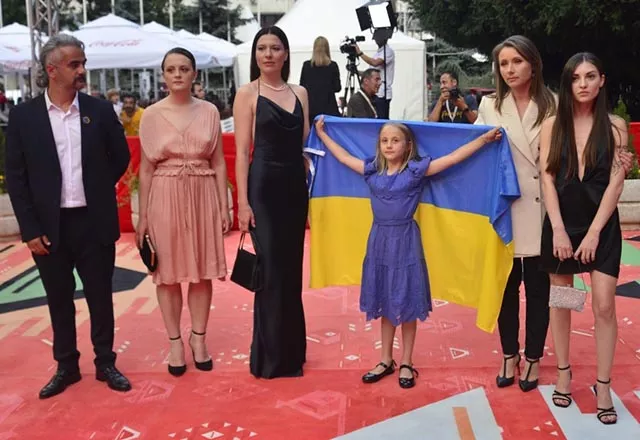 Ekipu filma "Klodnike" koja je crvenim tepihom prošetala je sa zastavom Ukrajine publika je pozdravila aplauzom.