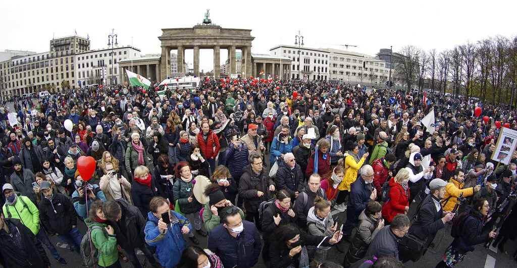 Demonstranti koji su se okupili u blizini Brandenburške kapije u Berlinu, bacali su boce i dimne bombe na policiju. Tom prilikom je privedeno nekoliko osoba, a na ostale je apelirano da se povuku.
