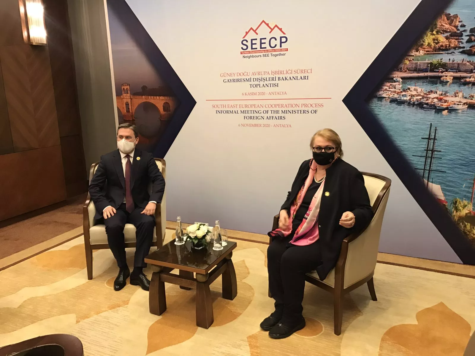 (Patria) - Zamjenica predsjedavajućeg Vijeća ministara i ministrica vanjskih poslova Bosne i Hercegovine Bisera Turković, danas je, 6. novembra 2020. godine, u Antaliji razgovarala sa novoimenovanim ministrom vanjskih poslova Republike Srbije Nikolom Selakovićem.