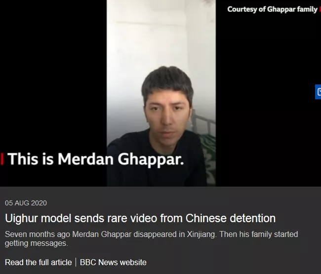 Prema pisanju zapadnih medija BBC, the Globe, Mail i Guardian, Ujgur Merdan Ghappar, uspješni model na komercijalnoj digitalnoj platformi Taobao, prebačen je u logor u Xinjiangu nakon što je proveo godinu dana u zatvoru zbog posjedovanja droge, za što oni koji ga podržavaju tvrde da je bila lažna optužba.