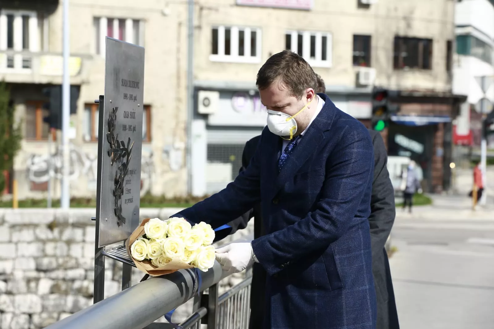 Gradonačelnik Skaka i predsjedavajući dr. Gavrić položili su cvijeće na spomen-obilježja na Mostu Suade i Olge, ubijenoj djeci Sarajeva i u Velikom parku.