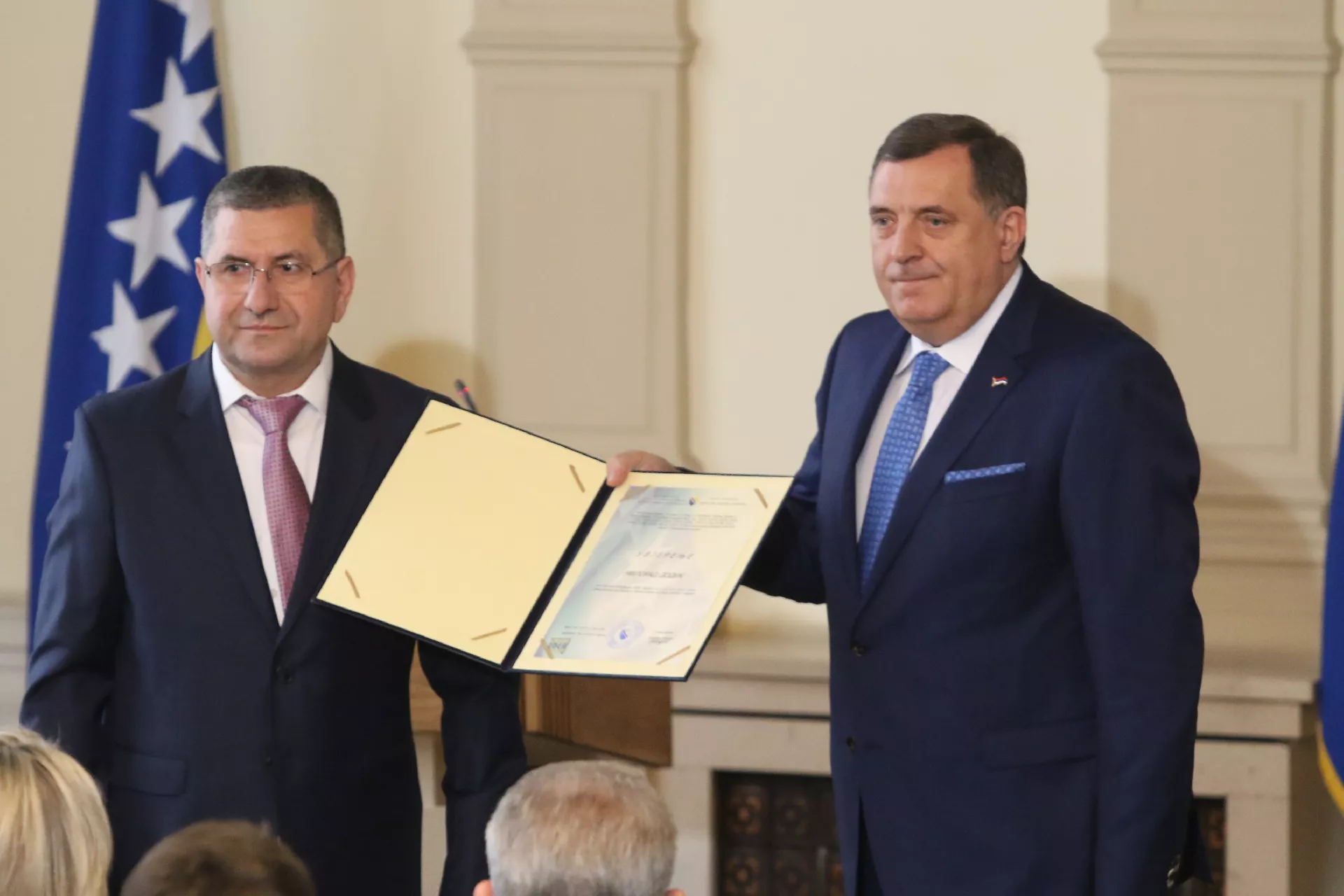 - Svugdje su postavljene dvije zastave. Ja to vidim kao jednu zastavu BiH, a jednu FBiH. Zato sam tražio i zastavu RS-a. Pismeno se mogu stranke izjasniti o mandataru. Ja hoću da radim, ali meni je manje stalo do te njihove Bosne. Ja hoću da radim, ali nije jedini pravnik Džaferović na Balkanu. On ističe da se kraj zastave ne može isticati druga, dobro stavi je onda u ćošak – kazao je Dodik.