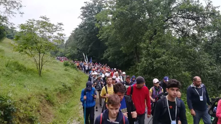 MARŠ MIRA 2018 (Patria) - Učesnici Marša mira su iz sela Mravinjci započeli jutros treću etapu pješačenja koja bi se danas trebala završiti u Memorijalnom centru Potočari u popodnevnim satima. U Maršu mira učestvuje više od 6.000 ljudi, djece i starijih osoba koji su na ovaj način htjeli odati počast žrtvama.