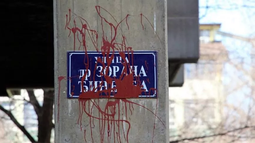 Uništavanje tabli sa nazivom ulice se desilo na 15-godišnjicu od atentata na srbijanskog premijera, prenosi Danas.rs.