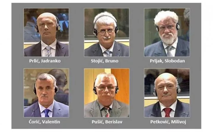 Na današnji dan 2013. godine Tribunal u Hagu izrekao je prvostepenu presudu Jadranku Prliću, Bruni Stojiću, Slobodanu Praljku, Milivoju Petkoviću, Valentinu Ćoriću i Berislavu Pušiću. Prliću je izrečena kazna od 25 godina zatvora i proglašen je krivim po svim tačkama optužnice. Stojiću, Praljku i Petkoviću od 20, Ćoriću od 16 i Pušiću od 10 godina zatvora. Franjo Tuđman, Gojko Šušak, Mate Boban, te ova Prlićeva grupa osuđeni su za udruženi zločinački poduhvat, stoji u obrazloženju suda. Sudsko vijeće je zaključilo da je krajnji cilj udruženog zločinačkog poduhvata bio uspostavljanje hrvatskog entiteta unutar granica Banovine Hrvatske iz 1939. Entitet je trebalo pripojiti Hrvatskoj ili da postane neovisna država unutar BiH, kaže se u presudi, piše agencija Patria.